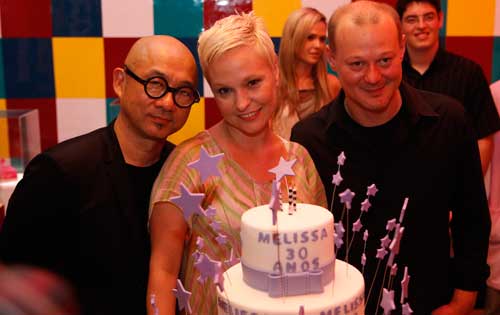A mostra é da direção criativa Erika Palomino e curadoria de Maria Montero, Maria é essa aí de baixo, dona de mais de 48 melissas.Agora, comemorando os 30 anos, Gaultier lança mais um modelo da sandália, programada para chegar no mercado em janeiro de 2010.